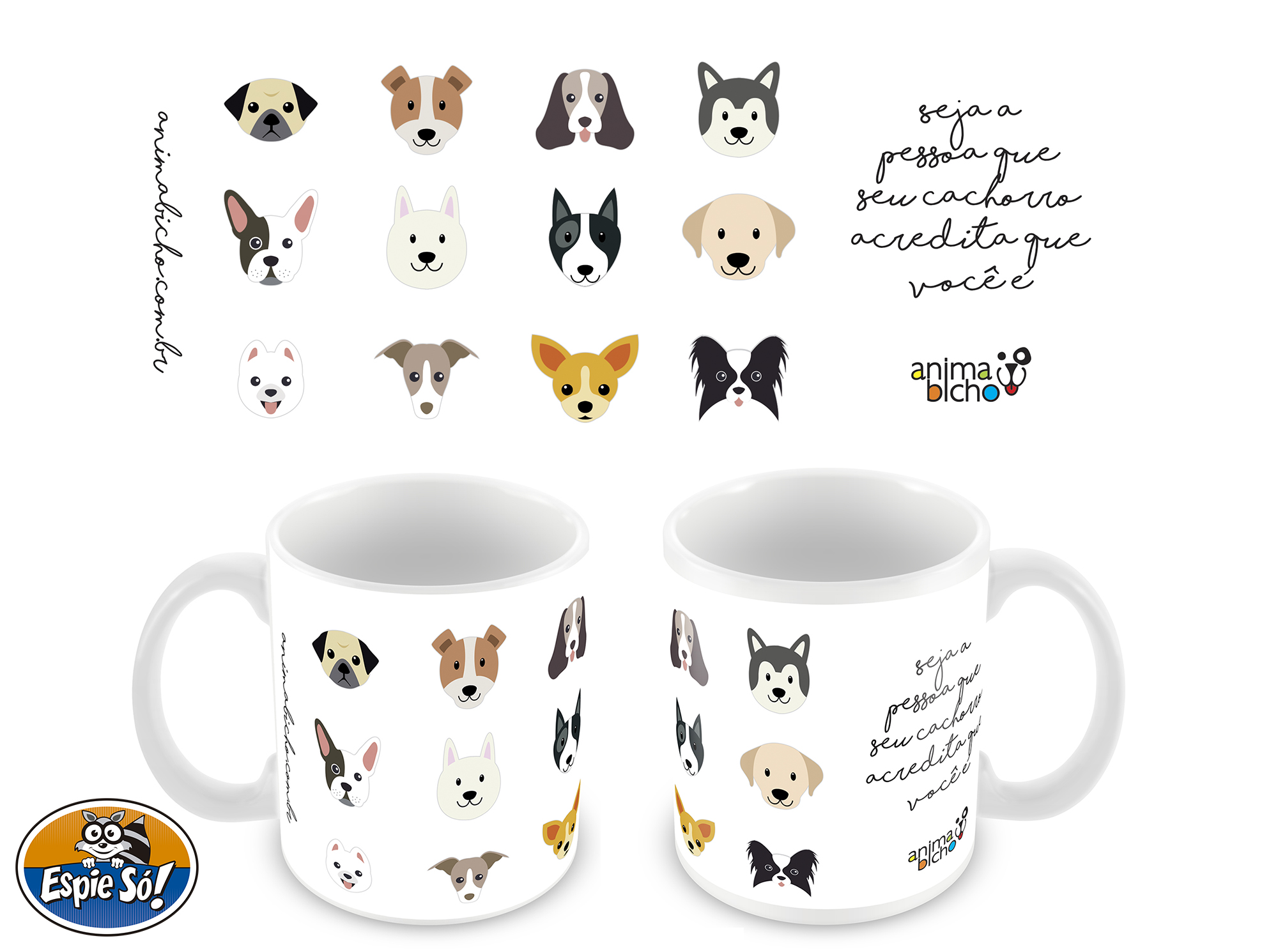 – 1 caneca personalizada da Espie Só! (www.espieso.com.br) – poderá ser escolhida entre dois modelos personalizados e em um deles o participante poderá inserir uma foto do seu animalzinho, à sua escolha; caneca de cerâmica resinada branca importada com capacidade de 330 ml.